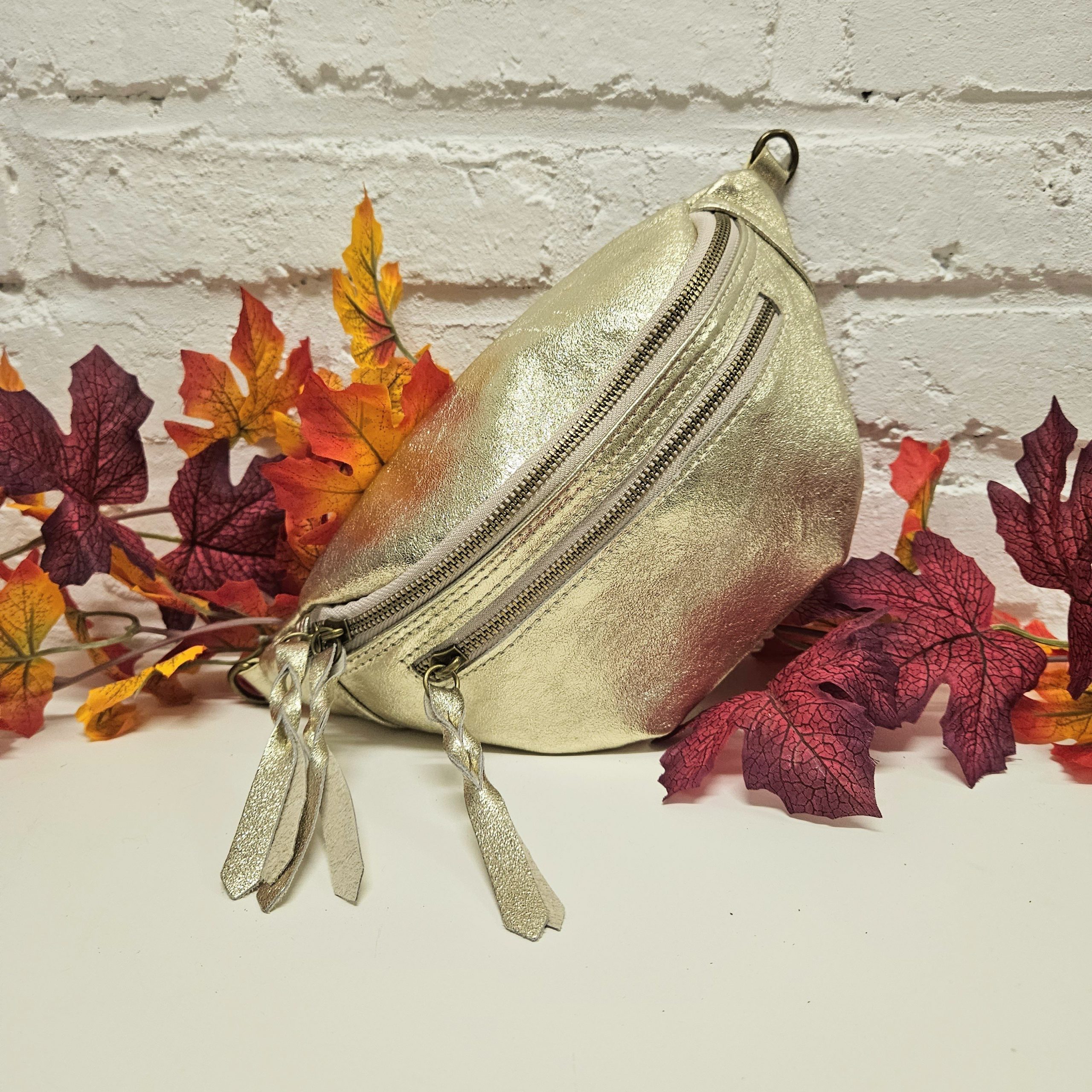 Banane SACHA cuir métallisé double zip