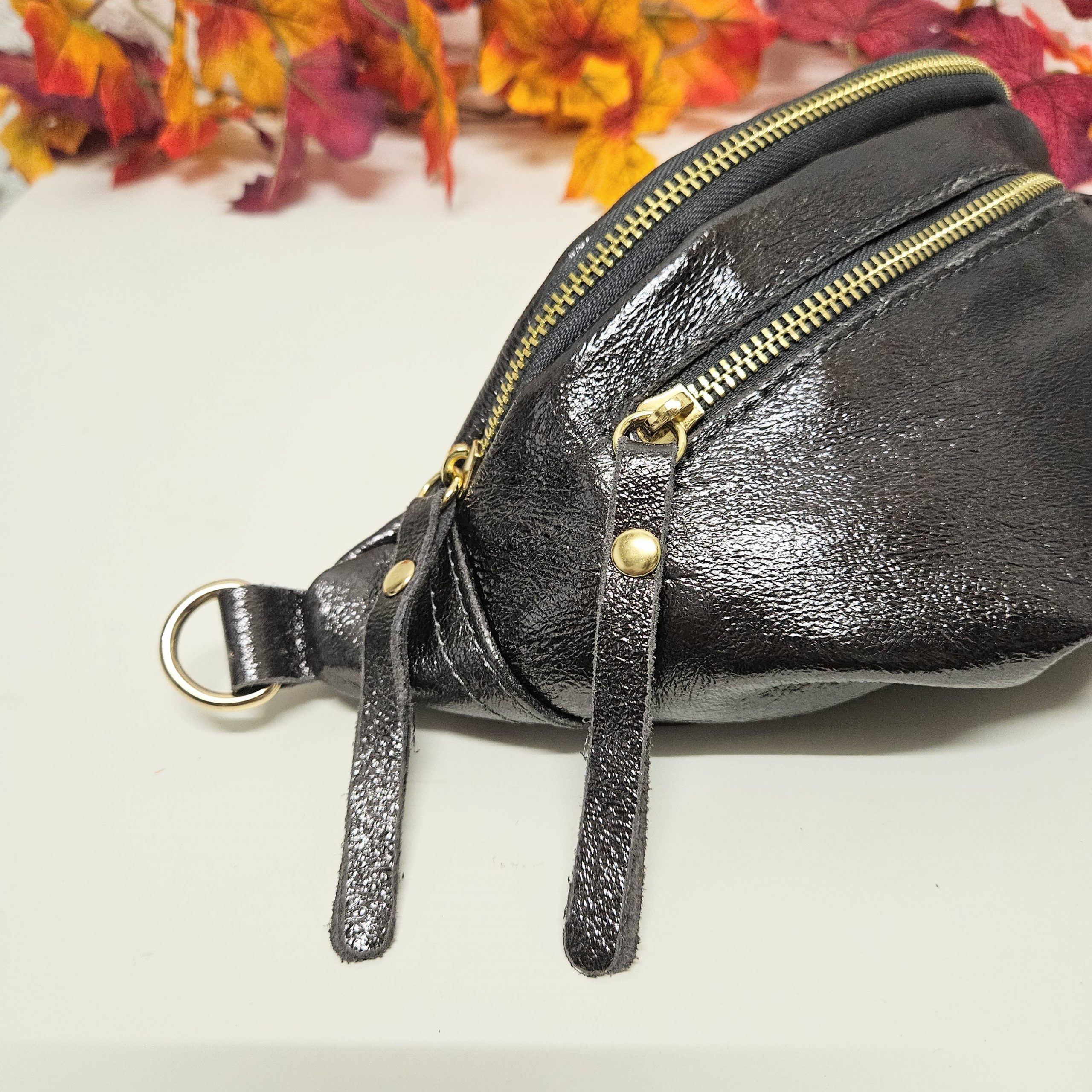 Banane SACHA cuir métallisé double zip