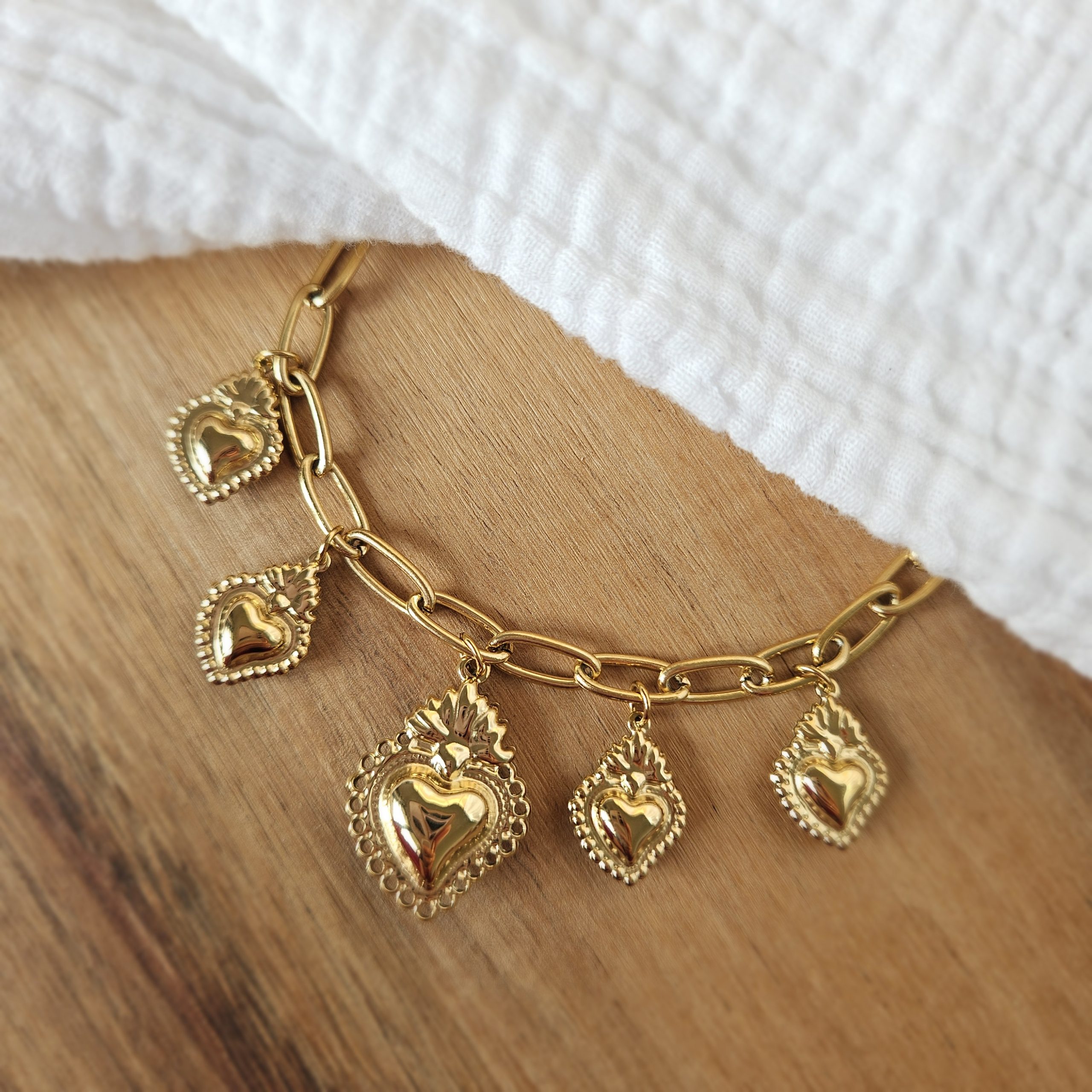 Retrouvez notre Bracelet charm’s coeur ex voto, pampilles, bracelet à Charm’s acier