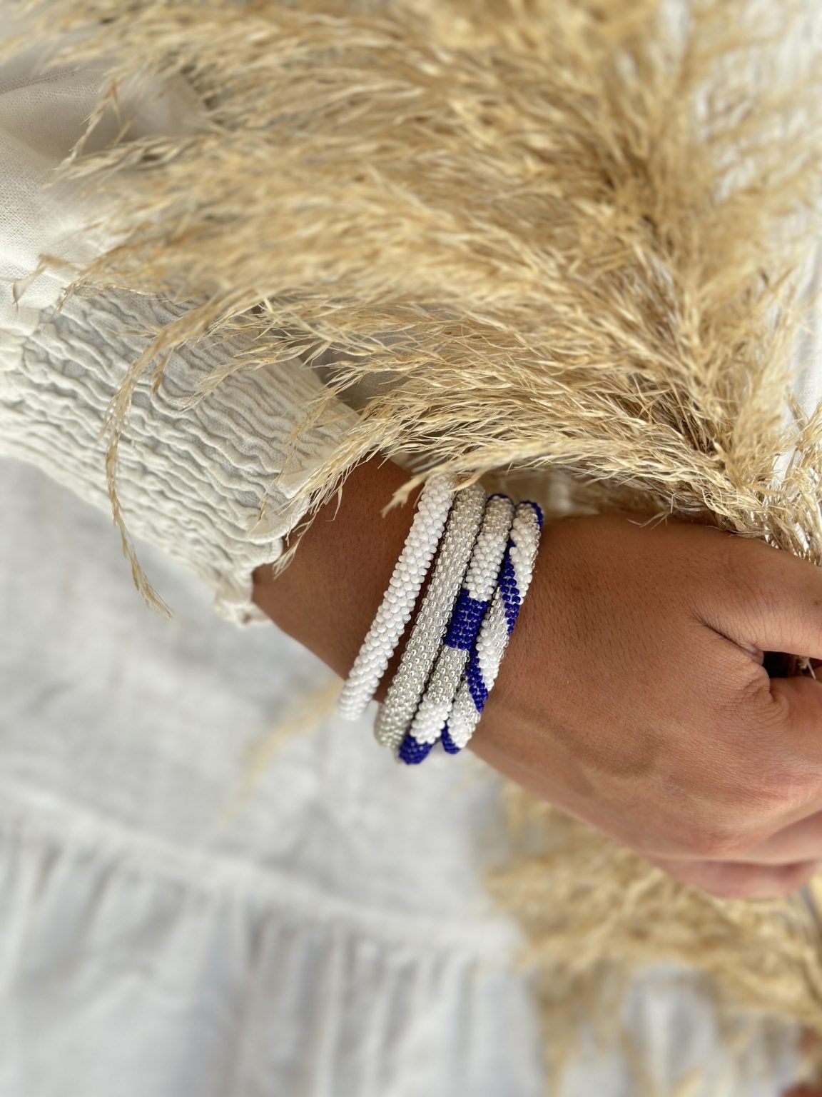 Bracelet Népalais Maison Kizo Motif Bleu majorelle Argenté et blanc