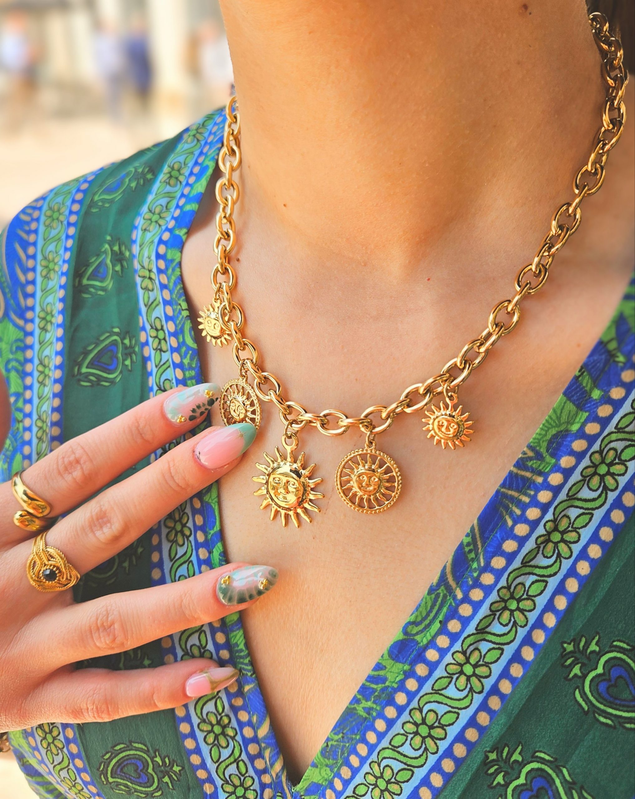 Le collier à Charm’s soleil évoque l’été et la chaleur des vacances! ☀️