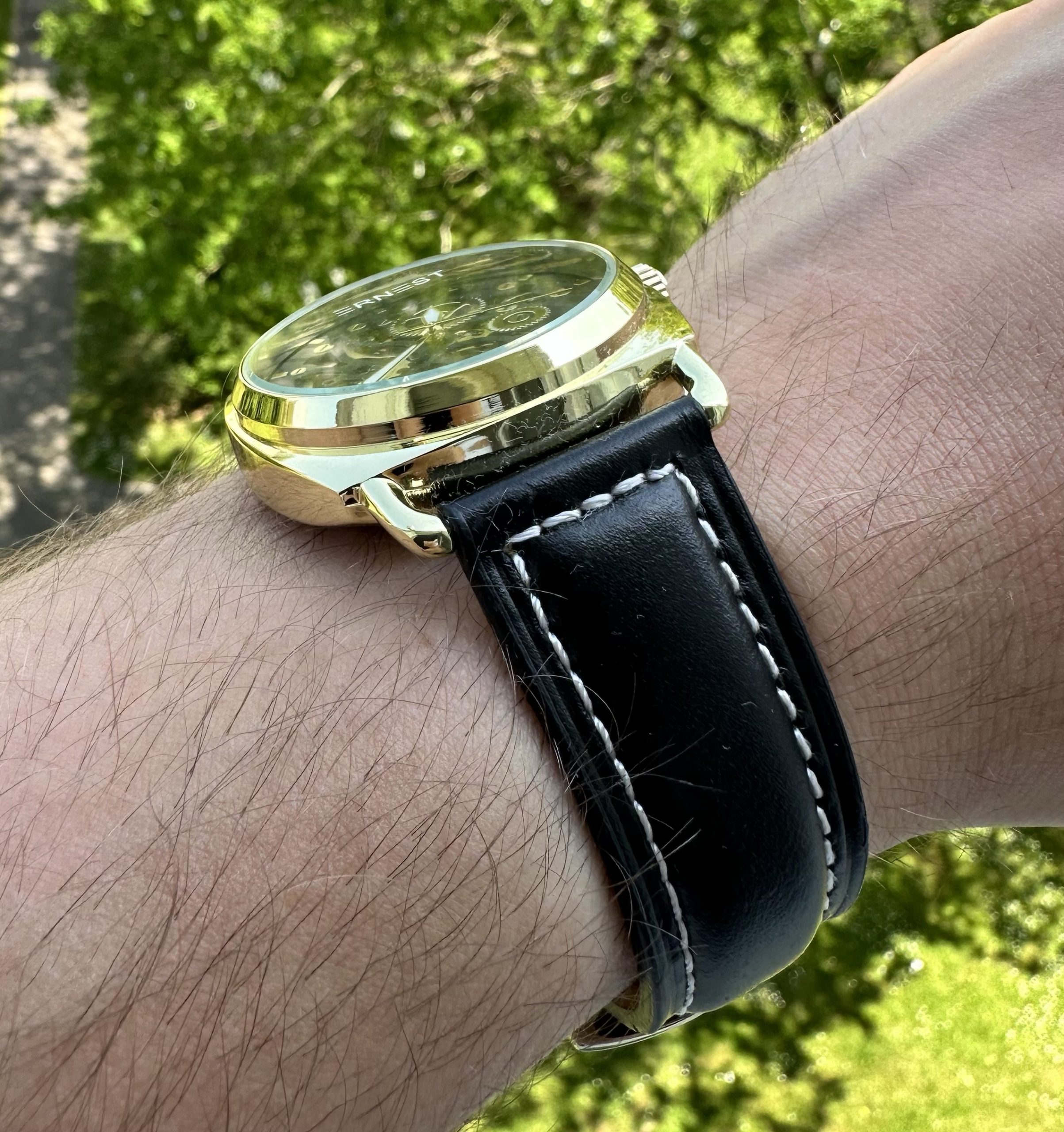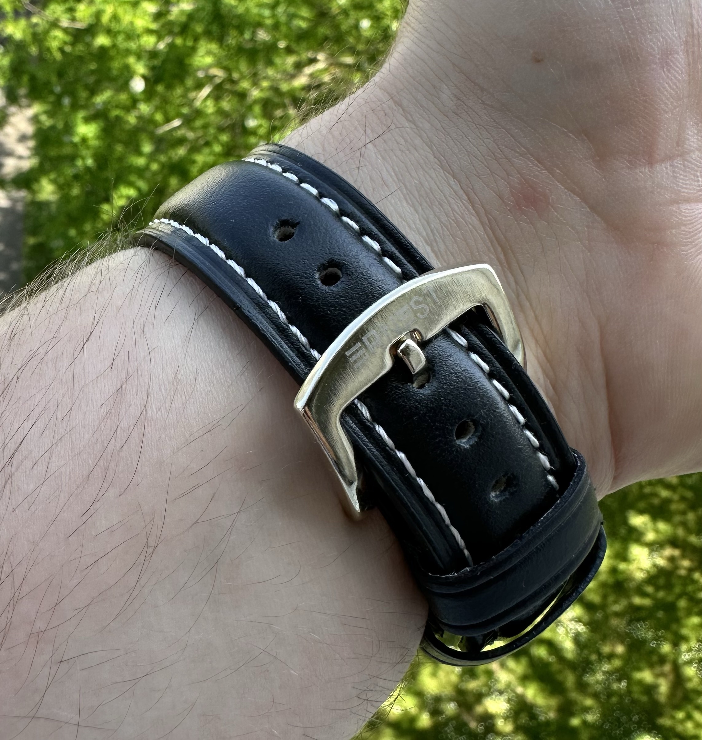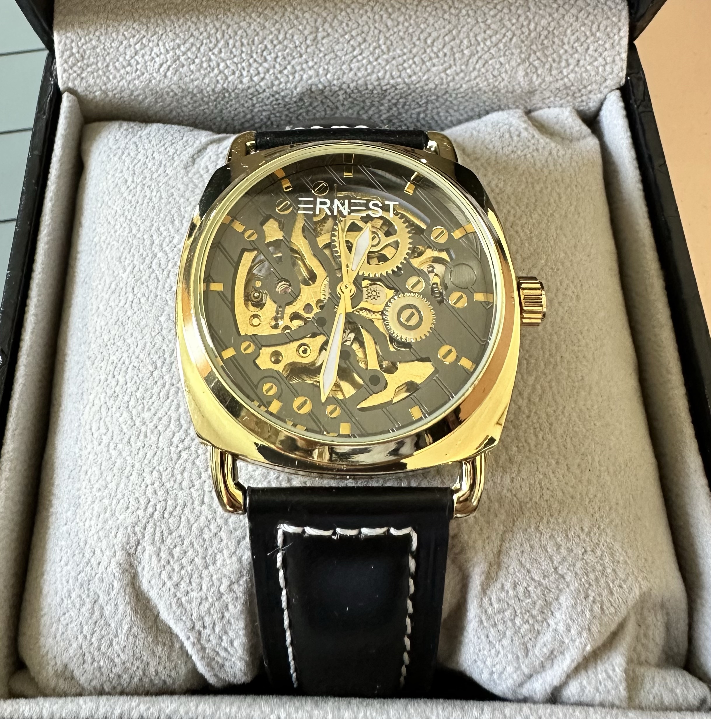 Avec son mouvement automatique, vous n’aurez jamais besoin de changer la pile de cette belle montre au boîtier coussin.